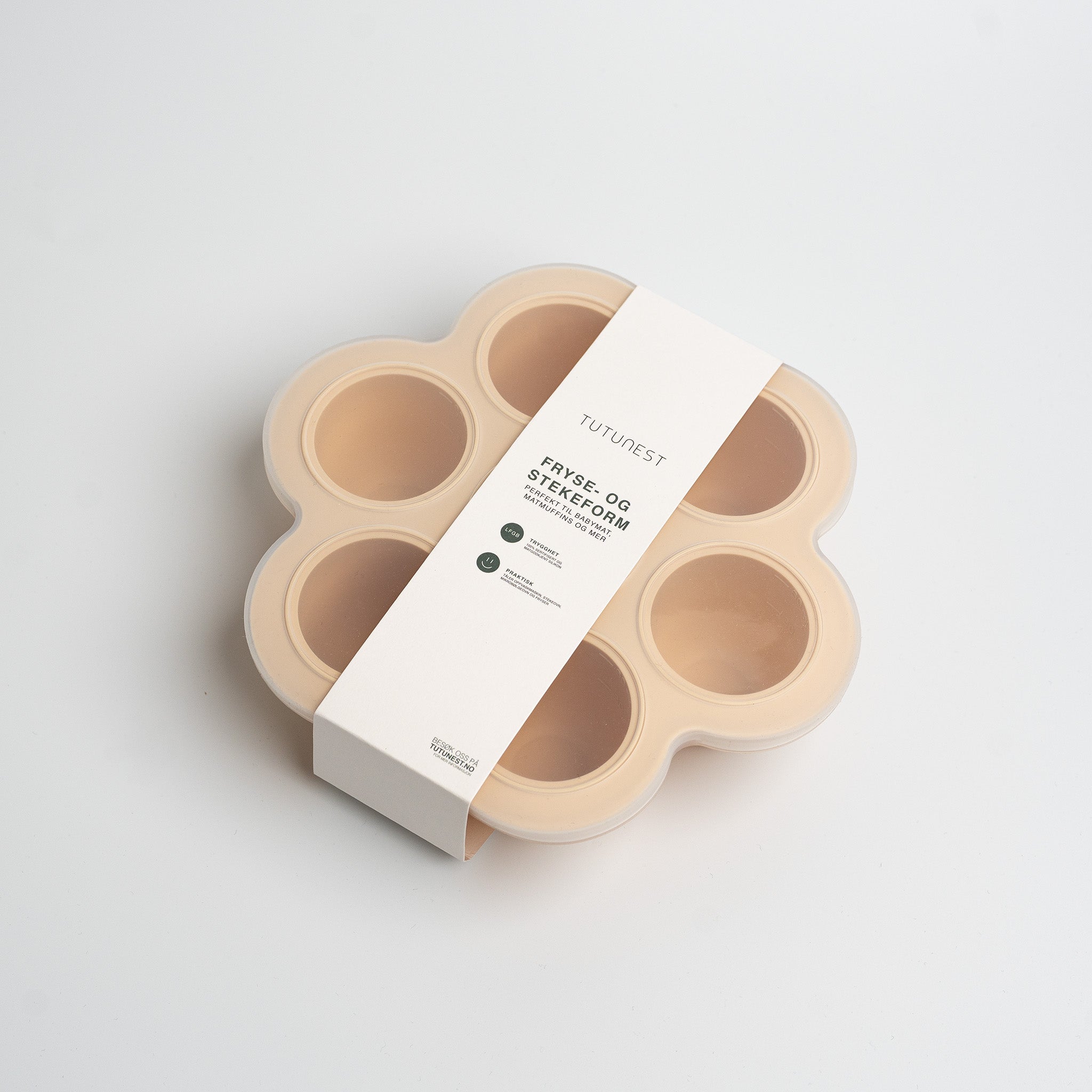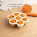 Gjør matlagingen enklere og tryggere med vår Fryse- og Stekeform i silikon - perfekt for hjemmelaget babymat, små porsjoner eller næringsrike matmuffins. Formen tåler både fryser, ovn og oppvaskmaskin, og er laget i 100% LFGB-sertifisert silikon - helt fri for plast og skadelige stoffer.