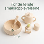 Gjør overgangen til fast føde enkel og trygg. Startpakken gir deg alt du trenger for babyens første måltider, designet for små hender og store smil.