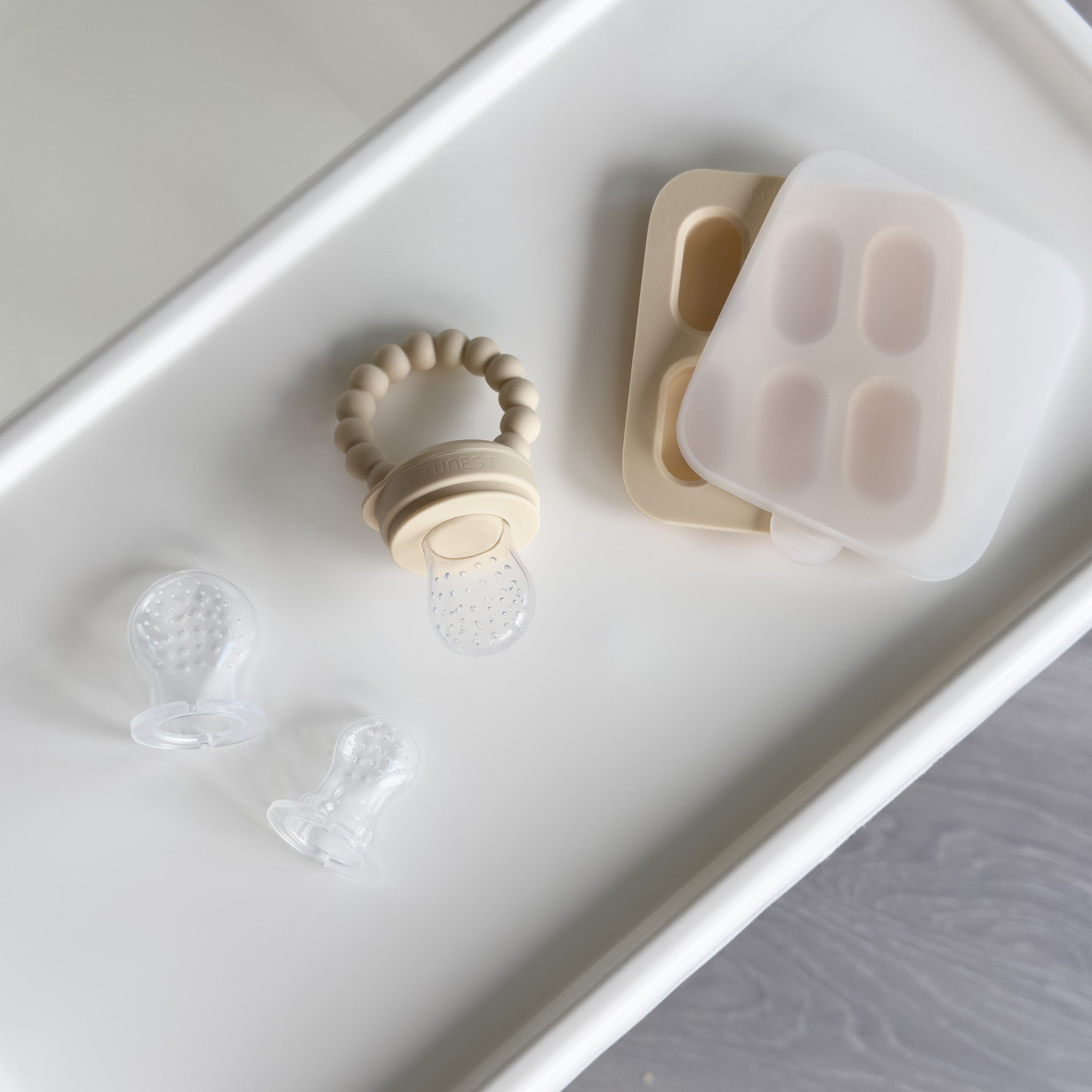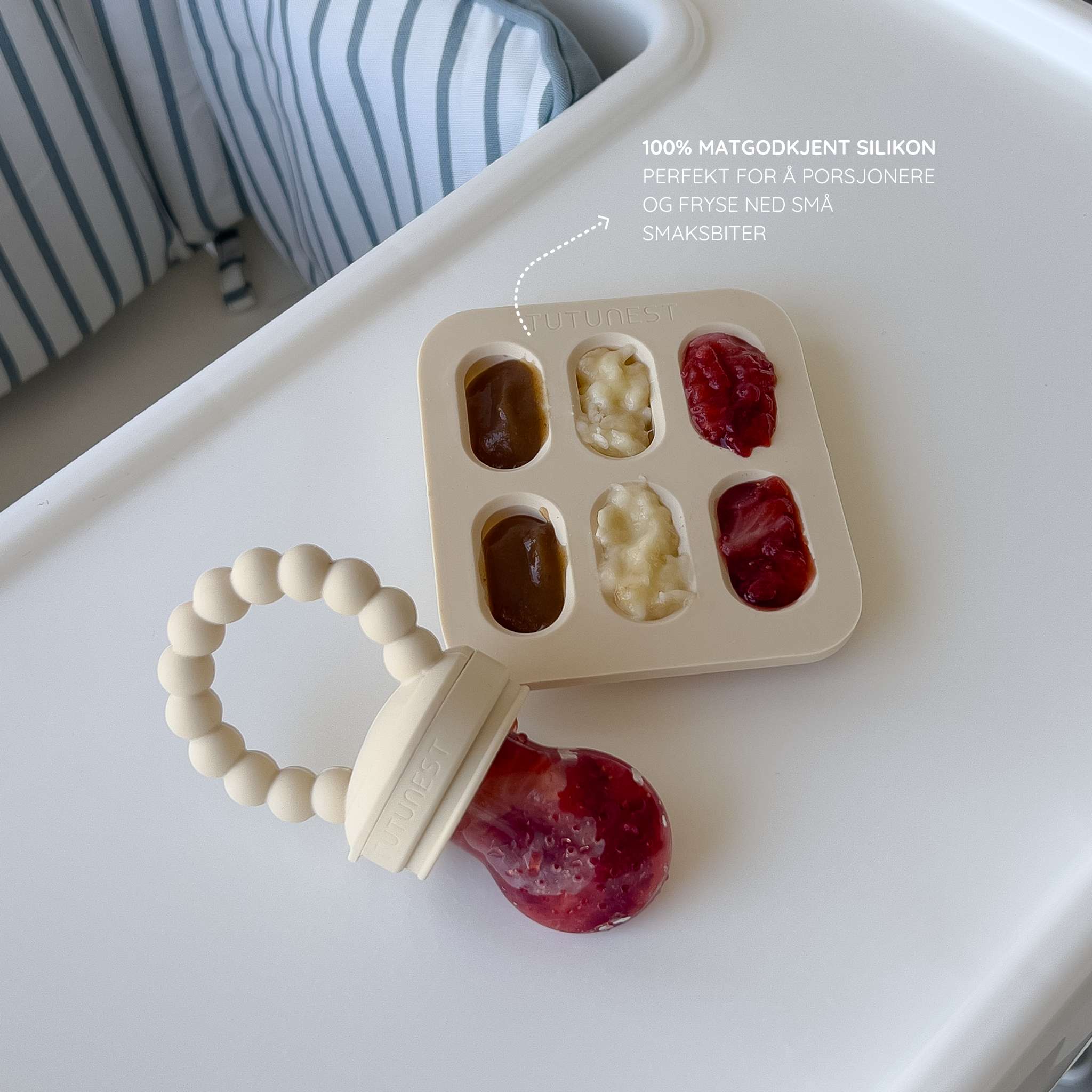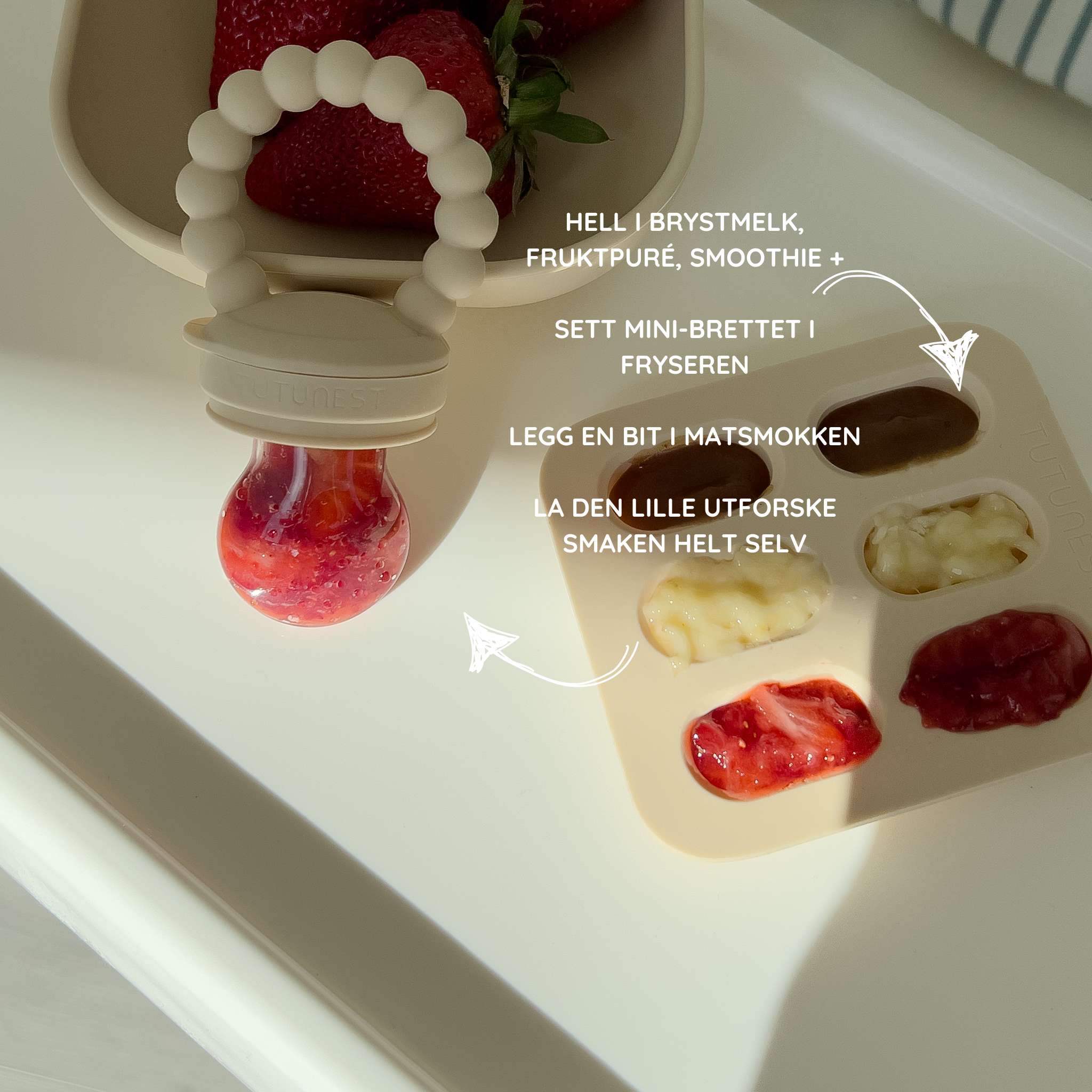 Mini-brettet gjør det enkelt å lage og fryse små porsjoner fruktpuré, morsmelk eller smoothie, slik at du alltid har sunne smaksprøver klare.