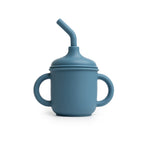 - Innhold i pakken:– 1 barnekopp i silikon (150 ml) med sugerør og lokk– 1 barneskål i silikon– 2 treningsskjeer i silikon