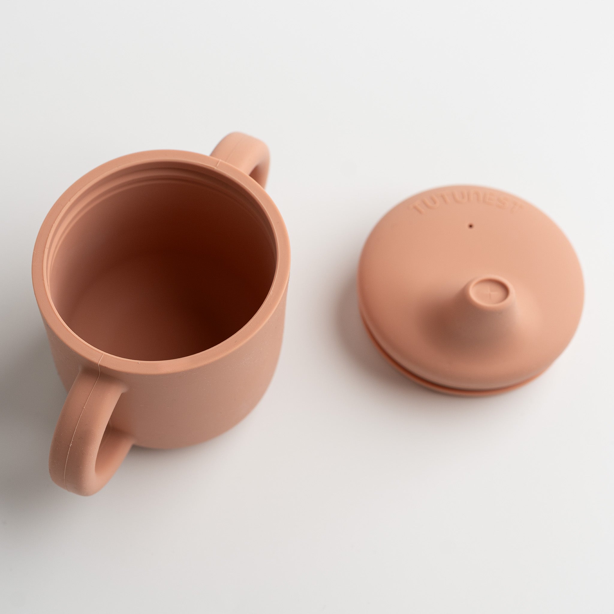 Én kopp – to måter å drikke på! Vår sølesikre tutekopp i silikon gjør det enkelt å tilpasse etter barnets utvikling - fra første slurk med tut til åpen kopp uten lokk.